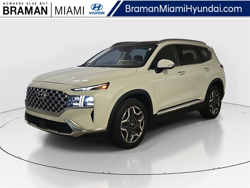 Braman Miami is Proud to offer you this Exceptional 2021 Hyundai Santa Fe, Appointed with the Limited Trim and is finished in Quartz White over Black Leather inside And it is ready for your consideration today! Unsurpassed Customer Service, Clean CarFax, Balance of Factory Warranty, Hyundai Certified Vehicle, Service Records Available, Rear Backup Camera, Apple Car Play, Factory GPS Navigation, Premium Factory Alloys, Power Sunroof / Moonroof, Hands Free Bluetooth, Premium Leather Interior, Non Smoker, Factory Alarm System, Best Color Combination, Power Rear Liftgate, Dual Power Seat, Heated Seats, Climate Controled Seating, 12 Speakers, 4-Wheel Disc Brakes, ABS brakes, Air Conditioning, Alloy wheels, AM/FM radio: SiriusXM, Apple CarPlay & Android Auto, Auto High-beam Headlights, Auto-dimming Rear-View mirror, Automatic temperature control, Axle Ratio: 3.316, Brake assist, Bumpers: body-color, Carpeted Floor Mats, Delay-off headlights, Driver door bin, Driver vanity mirror, Dual front impact airbags, Dual front side impact airbags, Electronic Stability Control, Emergency communication system, First Aid Kit, Four wheel independent suspension, Front anti-roll bar, Front Bucket Seats, Front Center Armrest, Front dual zone A/C, Front reading lights, Fully automatic headlights, Garage door transmitter: HomeLink, harman/kardon® Speakers, Heated & Ventilated Front Bucket Seats, Heated door mirrors, Heated front seats, Heated rear seats, Heated steering wheel, Illuminated entry, Leather Seat Trim, Leather steering wheel, Low tire pressure warning, Memory seat, Navigation System, Occupant sensing airbag, Option Group 01, Outside temperature display, Overhead airbag, Overhead console, Panic alarm, Passenger door bin, Passenger vanity mirror, Power door mirrors, Power driver seat, Power Liftgate, Power moonroof, Power passenger seat, Power steering, Power windows, Radio: AM/FM/MP3 Harman Kardon Display Audio, Rain sensing wipers, Rear anti-roll bar, Rear seat center armrest, Rear window defroster, Rear window wiper, Remote keyless entry, Security system, Speed control, Speed-sensing steering, Split folding rear seat, Spoiler, Steering wheel mounted audio controls, Tachometer, Telescoping steering wheel, Tilt steering wheel, Traction control, Trip computer, Turn signal indicator mirrors, Variably intermittent wipers, Ventilated front seats, Wheels: 19" x 7.5J Alloy. 2021 Hyundai Santa Fe Limited 2.5L I4 Shiftronic FWD