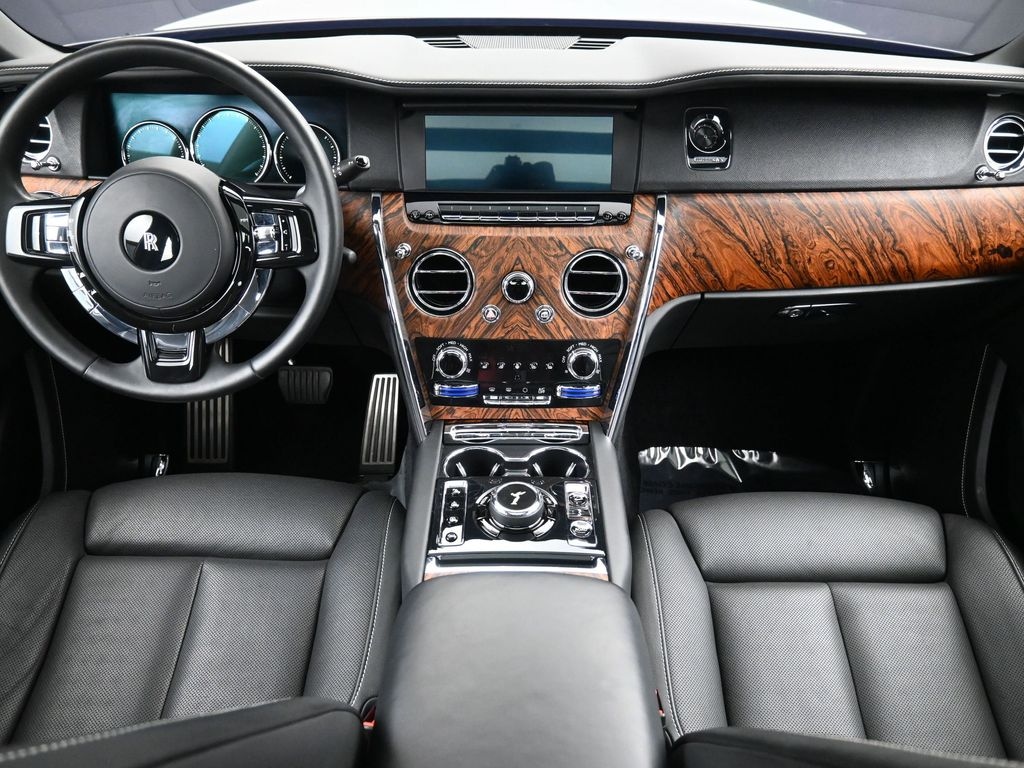 Features: 16 Speakers, 4-Wheel Disc Brakes, ABS brakes, Adaptive suspension, Air Conditioning, Alloy wheels, AM/FM radio: SiriusXM, Anti-whiplash front head restraints, Auto High-beam Headlights, Auto tilt-away steering wheel, Auto-dimming door mirrors, Auto-dimming Rear-View mirror, Auto-leveling suspension, Automatic temperature control, Axle Ratio: TBA, Bodyside moldings, Brake assist, Bumpers: body-color, CD player, Compass, Delay-off headlights, Door auto-latch, Driver door bin, Driver vanity mirror, Dual front impact airbags, Dual front side impact airbags, DVD-Audio, Electronic Stability Control, Emergency communication system: Rolls-Royce Assist, Exterior Parking Camera Rear, Four wheel independent suspension, Front anti-roll bar, Front Bucket Seats, Front Center Armrest w/Storage, Front dual zone A/C, Front fog lights, Front reading lights, Full-Leather Seating Surface, Garage door transmitter, Genuine wood console insert, Genuine wood door panel insert, Heads-Up Display, Heated & Electrically Adjustable Front Seats, Heated door mirrors, Heated front seats, Illuminated entry, Knee airbag, Leather steering wheel, Low tire pressure warning, Memory seat, Navigation System, Night vision lights, Occupant sensing airbag, Outside temperature display, Overhead airbag, Overhead console, Panic alarm, Passenger door bin, Passenger vanity mirror, Power adjustable rear head restraints, Power door mirrors, Power driver seat, Power moonroof, Power passenger seat, Power steering, Power windows, Radio data system, Radio: AM/FM/DAB w/CD/DVD & Navigation, Rain sensing wipers, Rear air conditioning, Rear anti-roll bar, Rear audio controls, Rear dual zone A/C, Rear reading lights, Rear seat center armrest, Rear window defroster, Remote keyless entry, Security system, Speed control, Speed-sensing steering, Split folding rear seat, Spoiler, Steering wheel memory, Steering wheel mounted audio controls, Telescoping steering wheel, Tilt steering wheel, Traction control, Trip computer, Turn signal indicator mirrors, Variably intermittent wipers, Weather band radio, and Wheels: 22" 7 Spoke Part Polished Shadow.