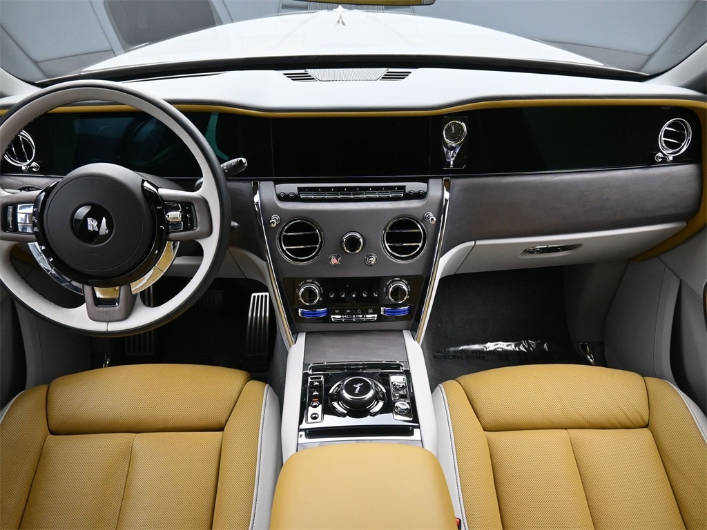 Features: ABS brakes, Alloy wheels, Compass, DVD-Audio, Electronic Stability Control, Front Bucket Seats, Front dual zone A/C, Heated door mirrors, Heated Front Bucket Seats, Heated front seats, Heated rear seats, Illuminated entry, Leather Seat Trim, Low tire pressure warning, Navigation System, Power moonroof, Power passenger seat, Rear dual zone A/C, Remote keyless entry, Split folding rear seat, Traction control, Ventilated front seats, 18 Speakers, 22" Fully Polished Twin Spoke Wheels, 4-Wheel Disc Brakes, A/V remote, Adaptive suspension, Air Conditioning, AM/FM radio: SiriusXM, AM/FM/CD/MP3 Satellite Audio System, Anti-whiplash front head restraints, Auto High-beam Headlights, Auto tilt-away steering wheel, Auto-dimming door mirrors, Auto-dimming Rear-View mirror, Auto-leveling suspension, Automatic temperature control, Bodyside moldings, Brake assist, Bumpers: body-color, CD player, Delay-off headlights, Driver door bin, Driver vanity mirror, Dual front impact airbags, Dual front side impact airbags, Emergency communication system: Rolls-Royce Assist, Exterior Parking Camera Rear, Four wheel independent suspension, Front anti-roll bar, Front Center Armrest w/Storage, Front Massage Seats, Front reading lights, Front Ventilated Seats, Garage door transmitter, Genuine wood door panel insert, Heads-Up Display, Heated steering wheel, Knee airbag, Leather steering wheel, Memory seat, Occupant sensing airbag, Outside temperature display, Overhead airbag, Overhead console, Panic alarm, Passenger door bin, Passenger vanity mirror, Power adjustable rear head restraints, Power door mirrors, Power driver seat, Power steering, Power windows, Radio data system, Rain sensing wipers, Rear air conditioning, Rear anti-roll bar, Rear reading lights, Rear seat center armrest, Rear window defroster, Security system, Speed control, Speed-sensing steering, Spoiler, Steering wheel memory, Steering wheel mounted audio controls, Telescoping steering wheel, Tilt steering wheel, Trip computer, Variably intermittent wipers, and Weather band radio.